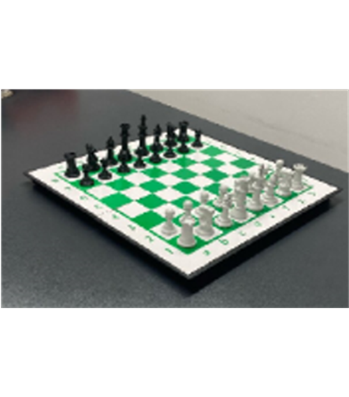 Bàn cờ vua: '- Bàn cờ: Chất liệu bằng nhựa. Kích thước (420x420) mm. - Quân cờ: Chất liệu bằng nhựa. Kích thước: Vua: 90 x 30 mm; Hậu: 79.7 x 30.4 mm; Tịnh: 60 x 29.8 mm; Mã: 52.5 x 29.4 mm; Xe: 43 x 28.7 mm; Tốt: 43 x 26.12 mm