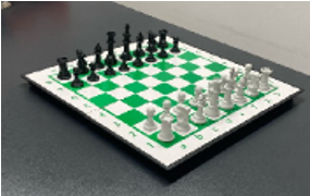 Bàn cờ vua: '- Bàn cờ: Chất liệu bằng nhựa. Kích thước (420x420) mm. - Quân cờ: Chất liệu bằng nhựa. Kích thước: Vua: 90 x 30 mm; Hậu: 79.7 x 30.4 mm; Tịnh: 60 x 29.8 mm; Mã: 52.5 x 29.4 mm; Xe: 43 x 28.7 mm; Tốt: 43 x 26.12 mm